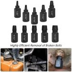 Le coffret extracteur de boulons 10 pièces offre une gamme complète de tailles, garantissant que vous disposiez de l’outil adapté à chaque tâche d’extraction.