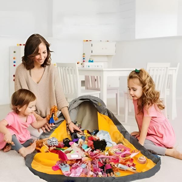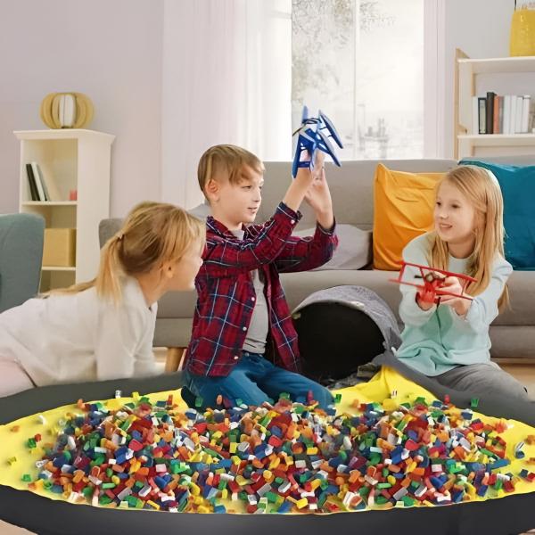 Náš FOLDATOY je ideálny spôsob, ako v priebehu niekoľkých sekúnd odstrániť neporiadok, od kociek Lega až po autíčka a iné hračky, ktoré si zvyknú nájsť cestu do stredu vašej obývačky.