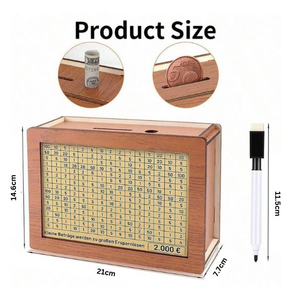 1 x COINSAVE drevená krabička na sporenie peňazí