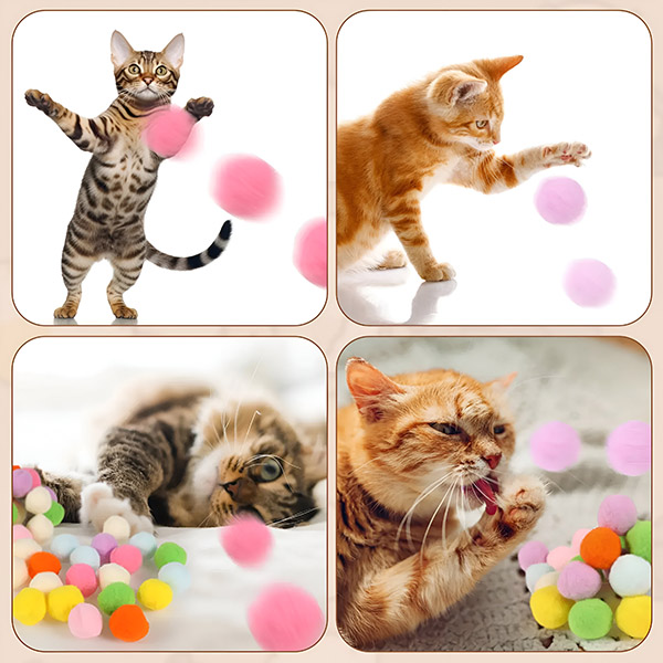 Plyšové loptičky nevydávajú žiadny hluk, takže vaša mačka sa môže hrať bez toho, aby rušila váš pokoj. Sú vyrobené z nefluoreskujúceho, farebne stáleho a mäkkého plyšového materiálu, ktorý zaručuje, že váš maznáčik zostane počas hry v bezpečí. Tieto mäkké loptičky sú šetrné k labkám a zubom vašej mačky, čím zabraňujú akémukoľvek riziku poranenia a poskytujú trvanlivé a dlhodobé používanie.