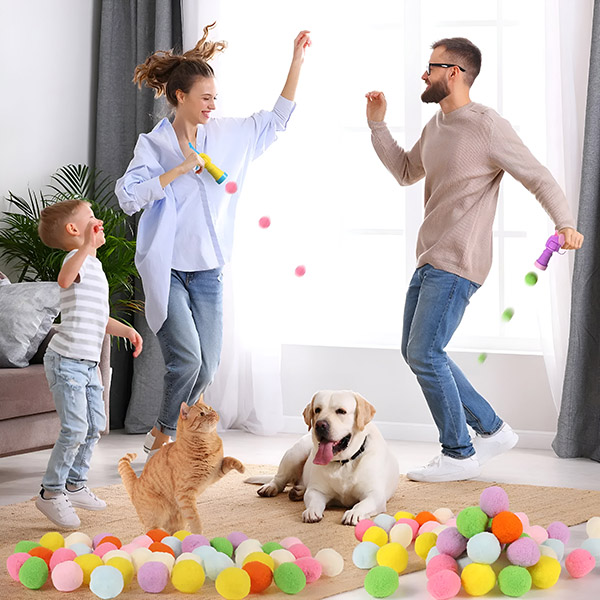 Vystreľovač loptičiek sa jednoducho používa – stačí potiahnuť páčku, naložiť loptičku a stlačiť tlačidlo na vystrelenie. Je vhodné na hranie v interiéri a poskytuje vašej mačke nekonečnú zábavu, aj keď nie ste nablízku.