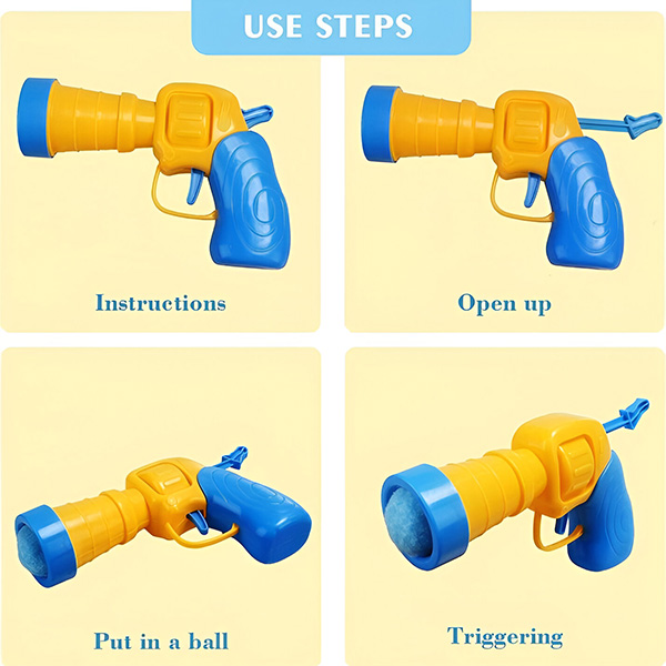 1x vystreľovač loptičiek, 20 farebných plyšových loptičiek