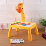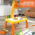 Farebný projektor s motívom žirafy navrhnutý tak, aby zaujal deti a podporoval rozvoj motoriky a kognitívnych schopností.