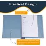 Obsahuje 10 rozširiteľných obálok (6 vo veľkosti A4, 4 polovičnej veľkosti) s kapacitou až 10 listov každá.