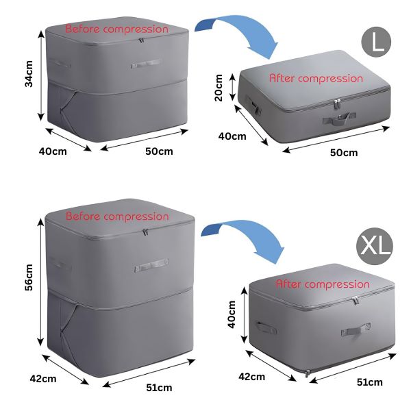 🧳 Ľahko stlačíte oblečenie, prikrývky a ďalšie veci – bez potreby vysávania.