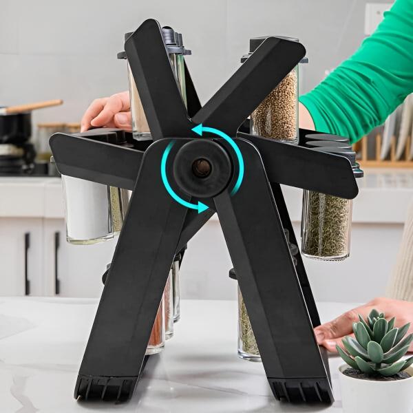 Bez námahy sa dostanete k svojim koreninám! Otočný stojan na korenie sa plynulo otáča, vďaka čomu okamžite nájdete nádobu, ktorú potrebujete.