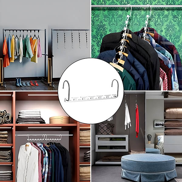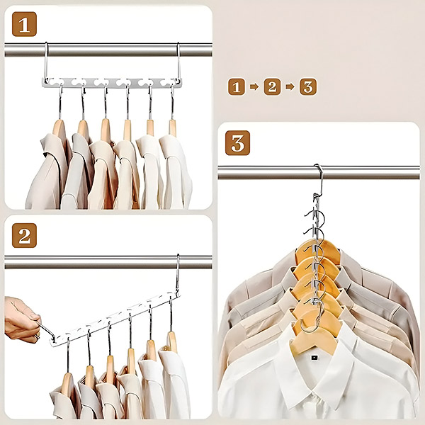 Nie je potrebné žiadne zložité nastavovanie! Jednoducho zaveste oblečenie a užívajte si okamžitú organizáciu. Inteligentný dizajn zaručuje ľahký prístup a prehľadnosť všetkých vašich odevov.