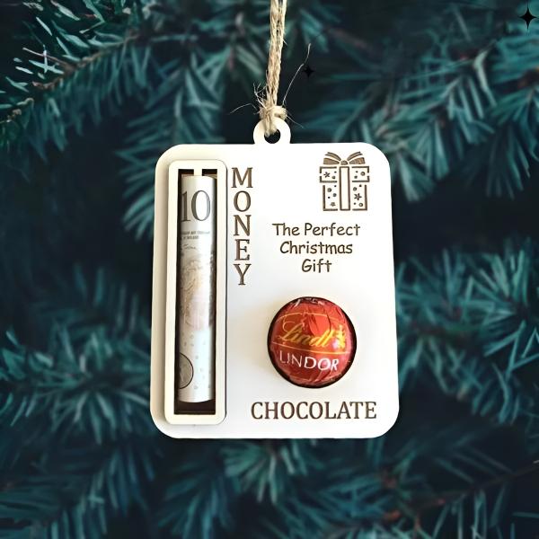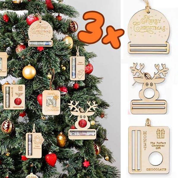 📦 Balenie obsahuje: 3x Vianočné ozdoby s klipom na peniaze (Vzory: 1x sob, 1x darčeková krabička, 1x ozdoba s textom „Veselé Vianoce“)