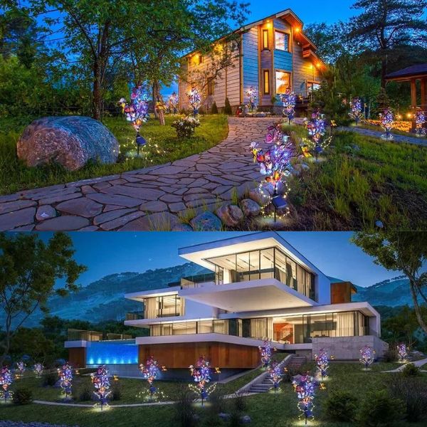 Tieto motýlie svetlá, ktoré sú ideálne do záhrad, na trávniky, chodníky, nádvoria a ďalšie miesta, prinášajú nádherné svetlo a vytvárajú romantickú a slávnostnú atmosféru všade, kde sú umiestnené. Použite ich na osvetlenie chodníkov, výzdobu vonkajších osláv alebo zvýraznenie krásy vašej záhradnej krajiny.